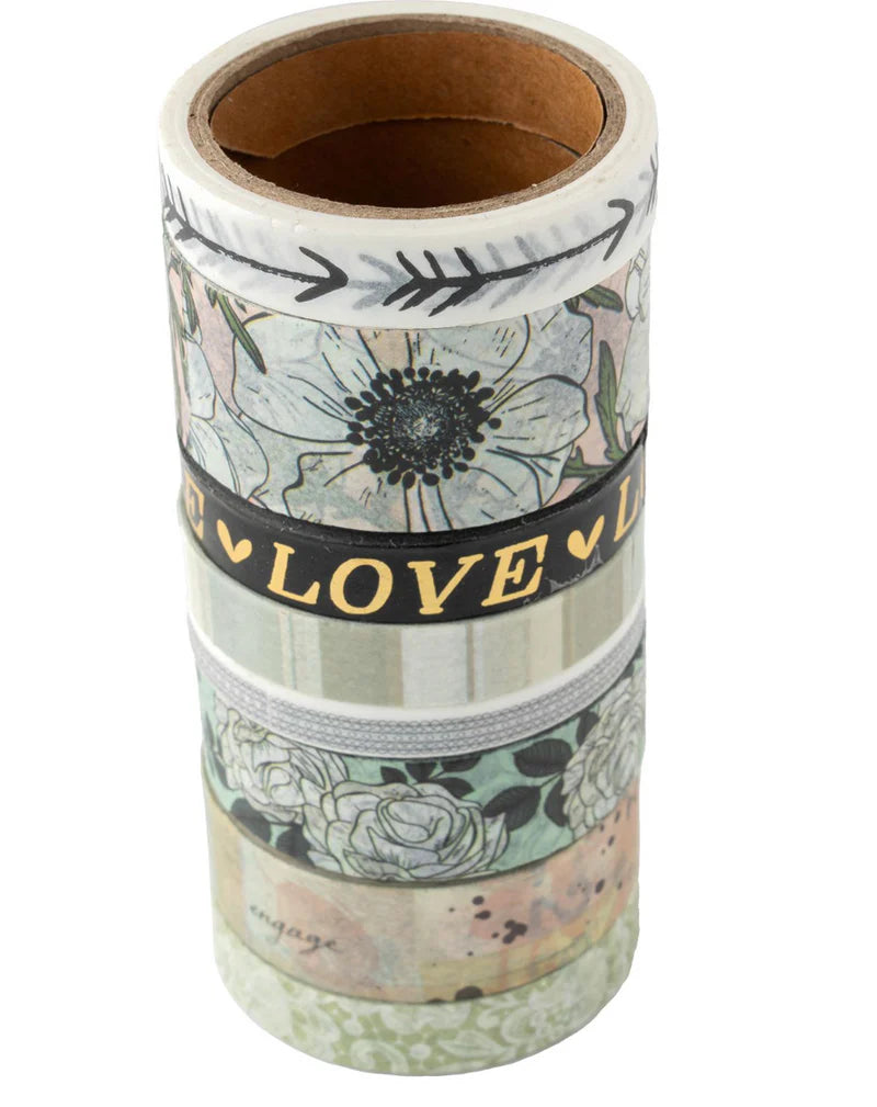 Incluye: 8 rollos de cinta washi en una variedad de diseños y colores.
