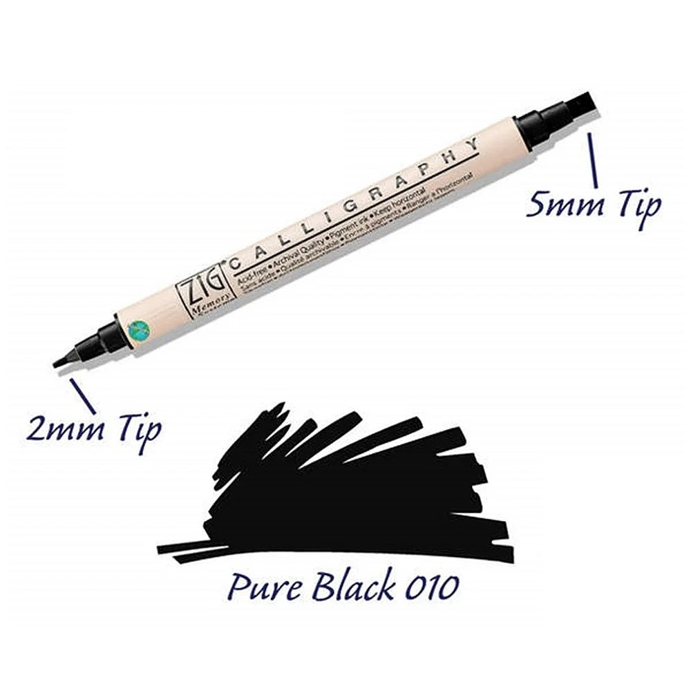 Kuretake Co., Ltd. es un fabricante japonés de papelería. Tinta a base de agua que no sangra y es segura para fotos e impermeable. Doble punta, un extremo tiene una punta cuadrada de 5 mm mientras que el otro tiene una punta cuadrada de 2 mm.